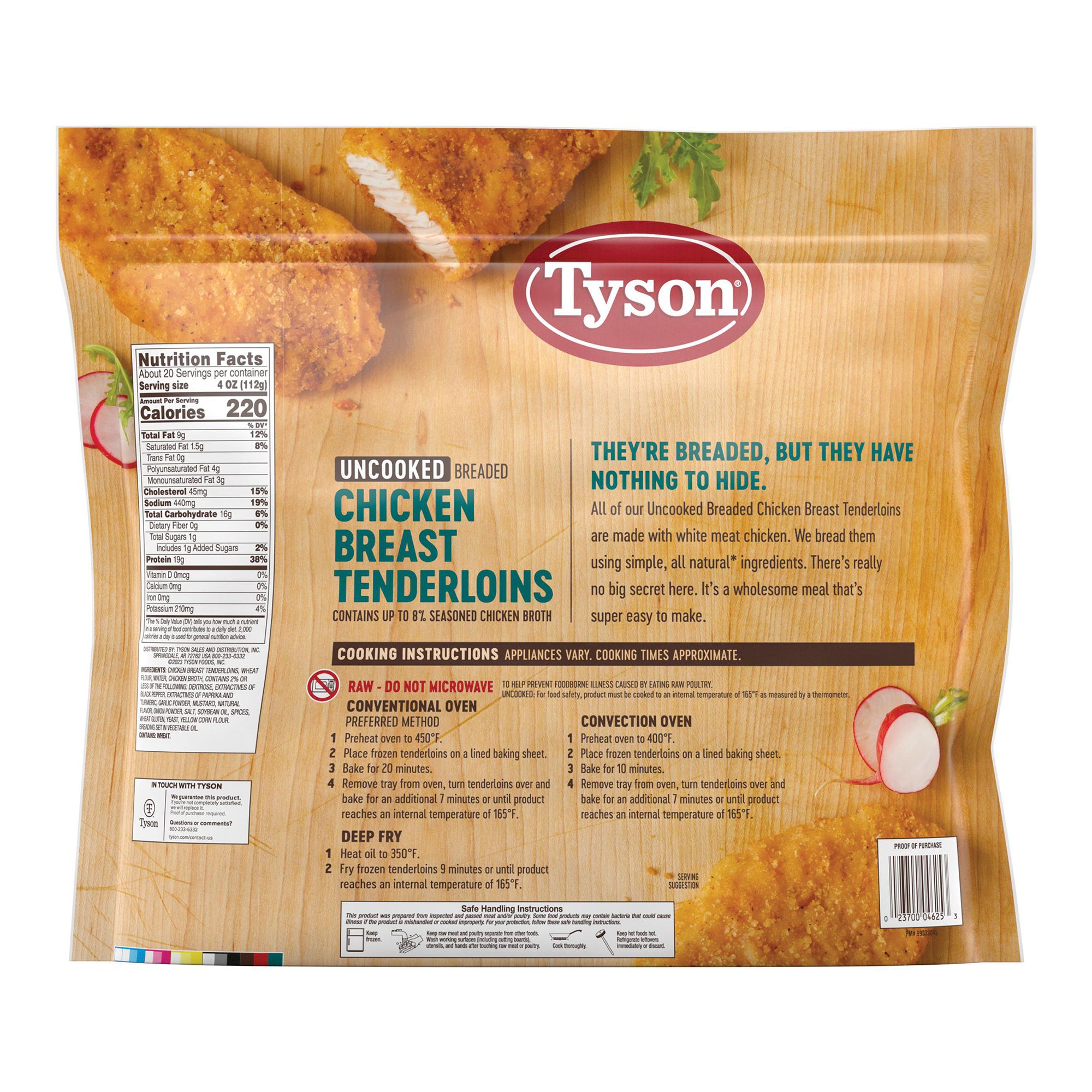If you don't have a meat thermometer. Chicken breast tenderloins, wheat flour, water, contains 2% or less of the following: Tyson red label® nae frozen uncooked golden crispy breaded chicken tenderloins, approx. Tyson® brand offers a full line of natural chicken nuggets & crispy strips & chicken tenders. Tyson breaded chicken breast tenderloins offer easy preparation that makes them great for rushed evenings during the week.